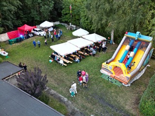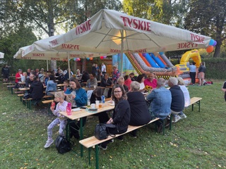 Po części oficjalnej rozpoczęła się wspólna biesiada. Na uczestników czekał poczęstunek oraz dobra zabawa przy muzyce. Dzieci mogły korzystać z dmuchanej zjeżdżalni, która cieszyła się ogromnym zainteresowaniem najmłodszych. Dorośli przy wspólnym stole dzielili się doświadczeniami ogrodniczymi oraz planami na przyszłość.