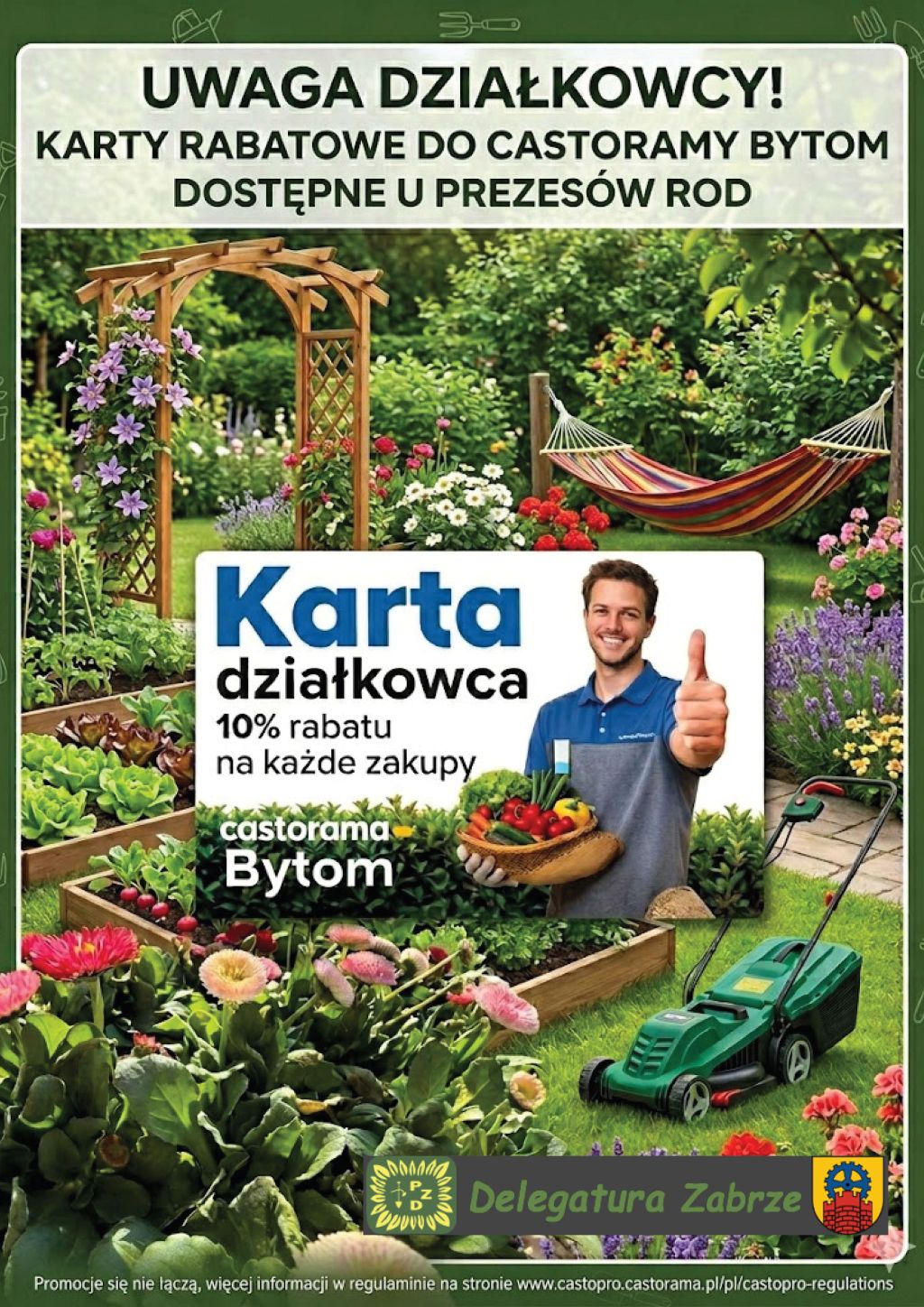 Działkowcy z Zabrzu będą mogli skorzystać w sezonie 2026 ze specjalnej oferty przygotowanej przez Castorama Bytom. Od marca do końca września obowiązywać będzie Karta Działkowca uprawniająca do 10% rabatu na zakupy ogrodnicze. Rabat dotyczy szerokiego asortymentu produktów potrzebnych na działce, w tym roślin, sadzonek, ziemi, podłoży, nawozów, narzędzi, sprzętu ogrodniczego oraz różnego rodzaju akcesoriów. Zniżka nie jest ograniczona limitem kwoty, dzięki czemu można z niej korzystać przez cały sezon zgodnie z własnymi potrzebami.